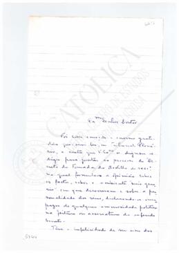 (Mouriscas) Agradecimento pela carta de Guilherme Braga da Cruz que ouviu ler no Tribunal Plenário, para juntar ao processo do "Decreto da Tomada da Bastilha de 1961".